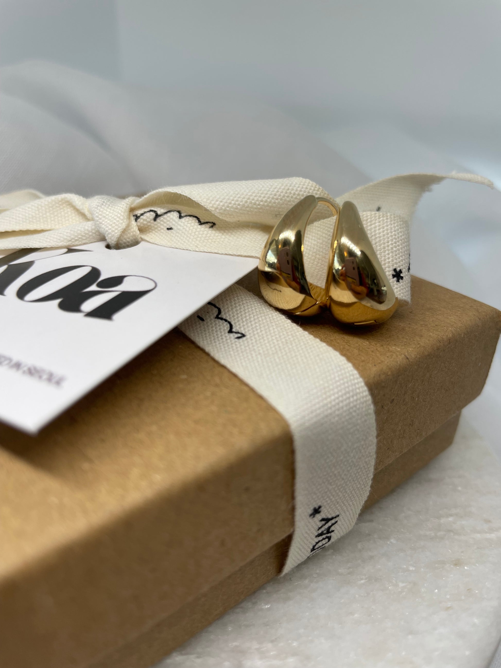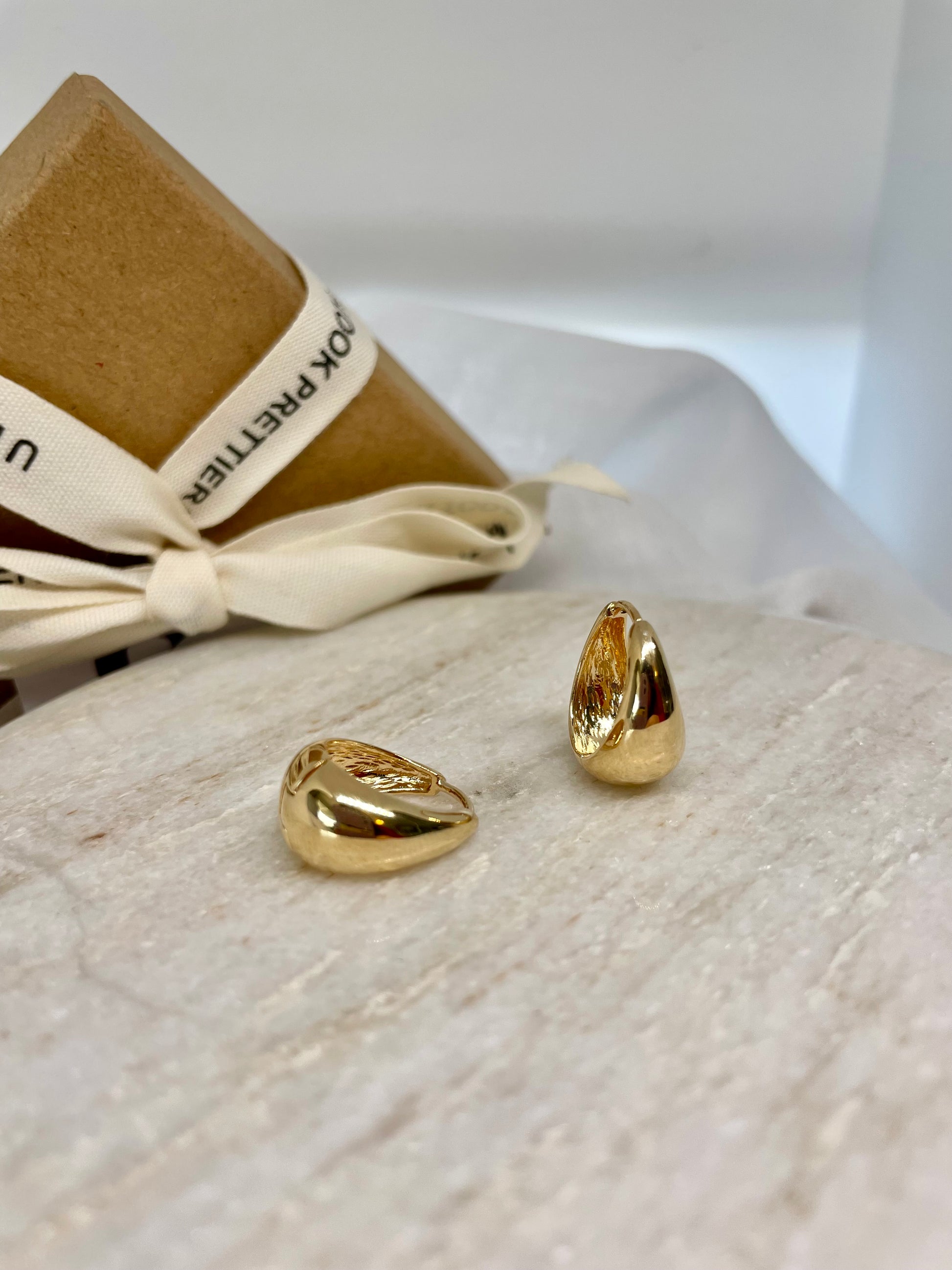 Must-have, essential tear drop huggies. Not too big, not too small - Perfectly sized for everyday wear. Available gold and silver.