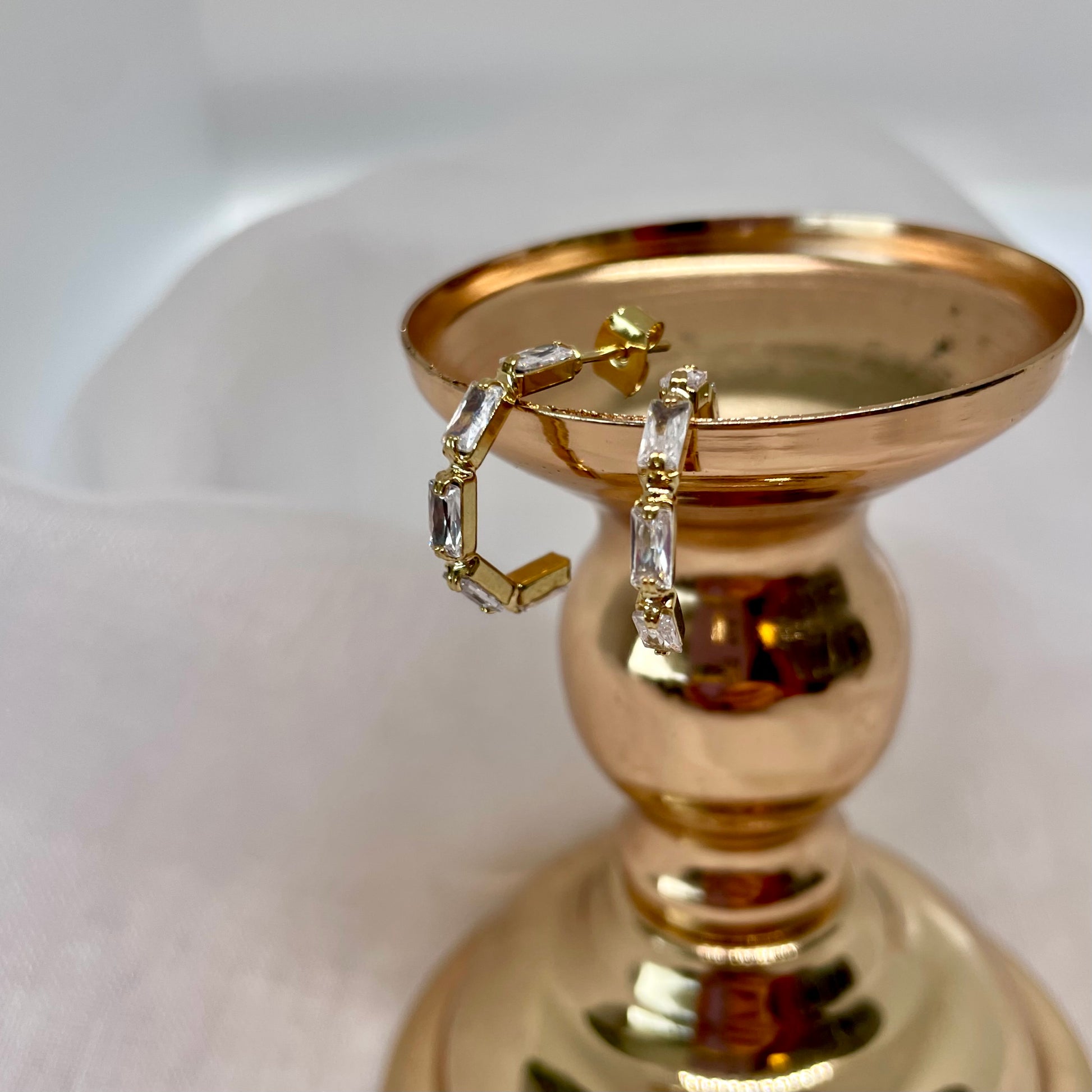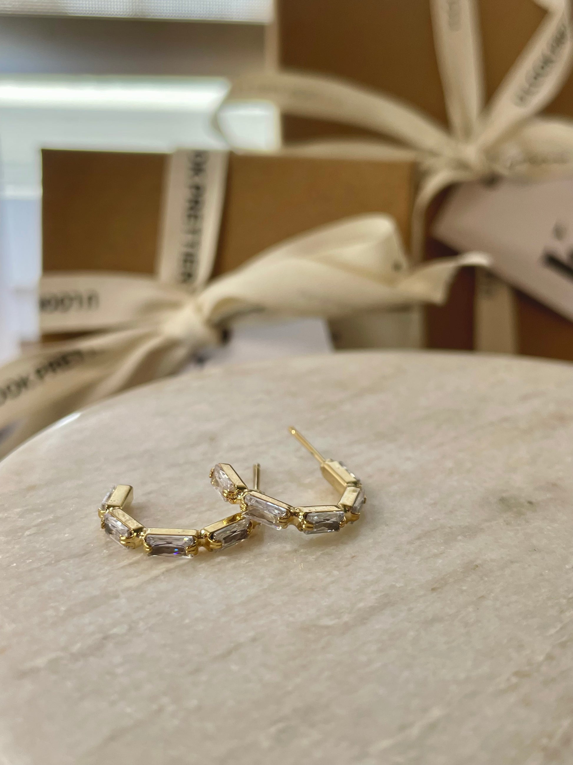These medium crystal hoops bring a fun vintage flair to any look. Choose from shiny gold or sleek silver to match your style perfectly.