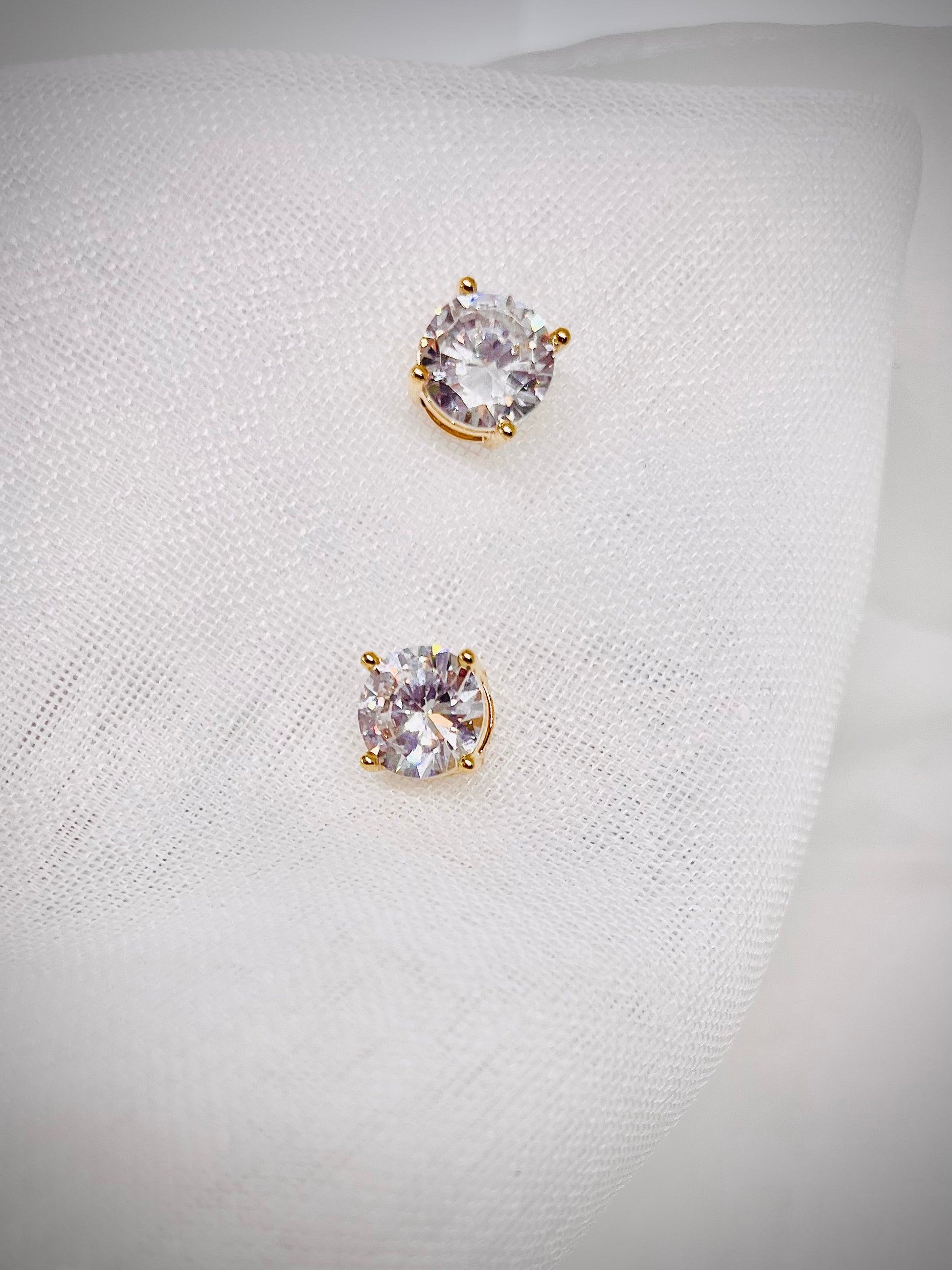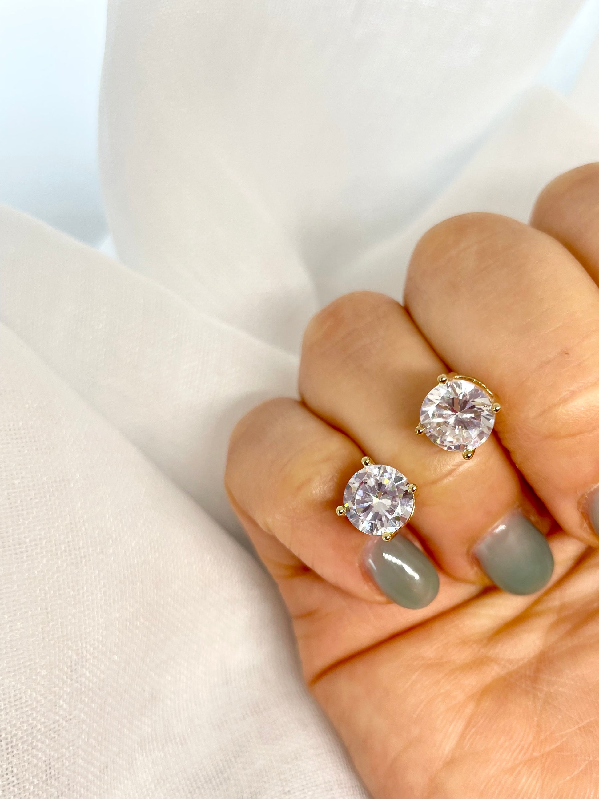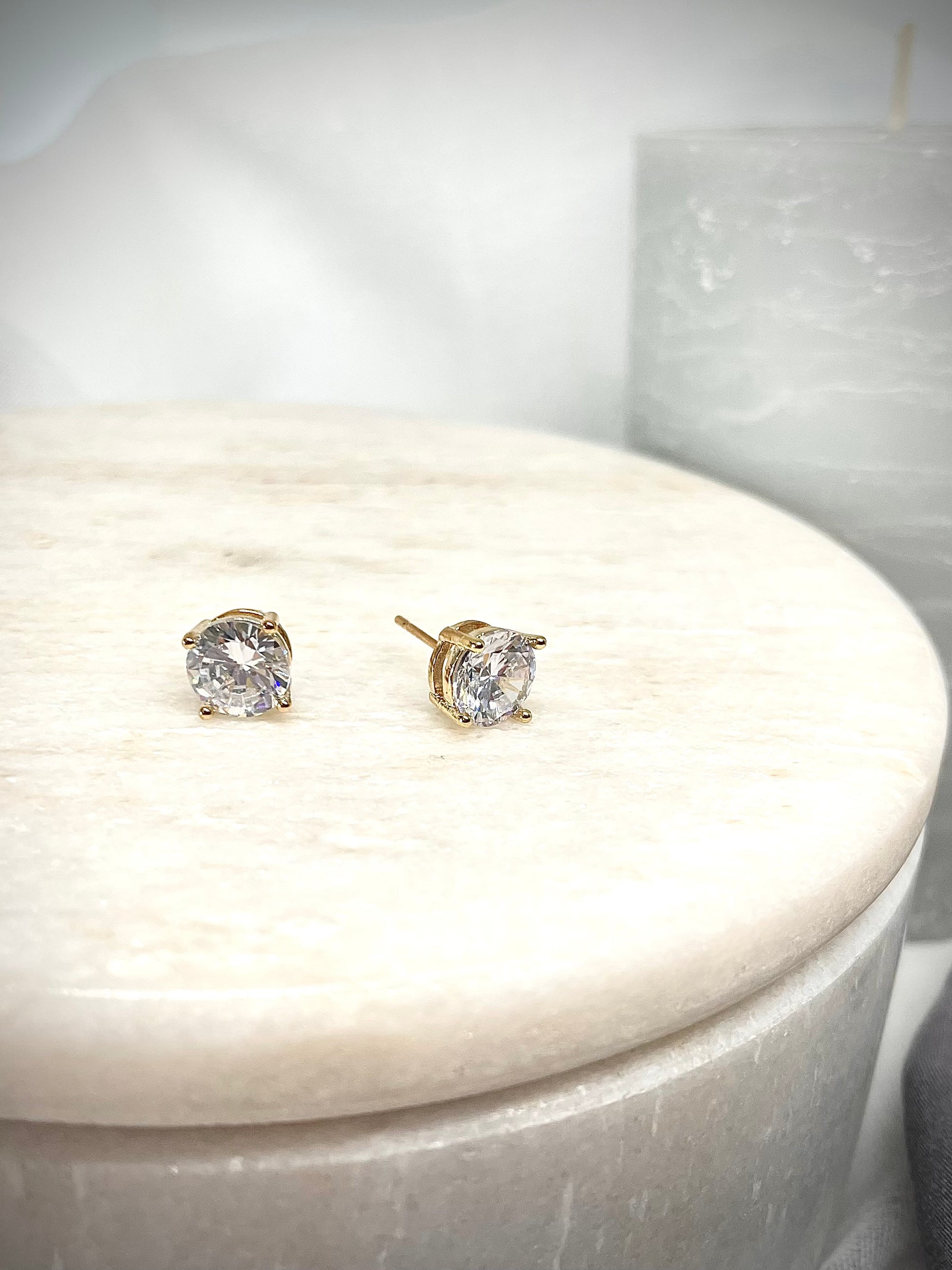 Timeless cubic zirconia studs offering a sparkle with diamond like brilliance. Perfect for wearing alone or layering with other Koa designs. Offered in three distinct sizes and in gold and silver hardware.