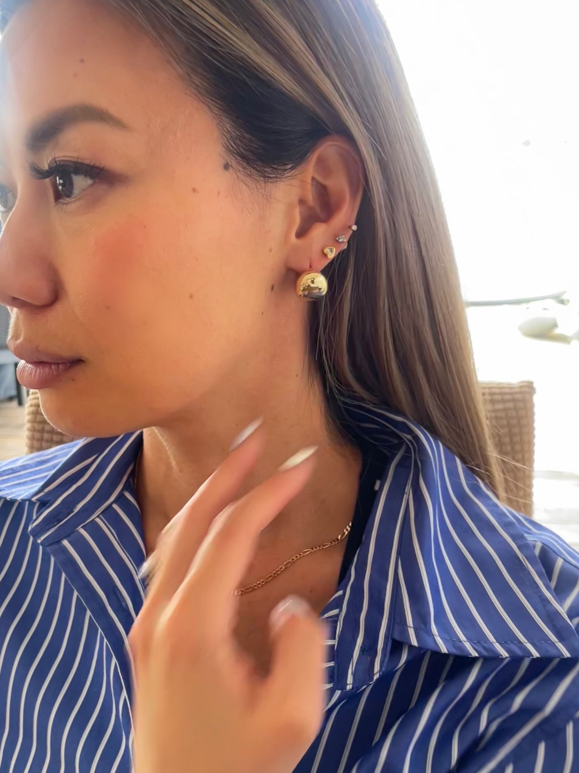 The Jennie chunky dome huggies offer a playful mix of bold and minimal style that’s sure to turn heads. Available in glam gold and sleek silver, these earrings effortlessly elevate any look, from daytime adventures to night out fun.
