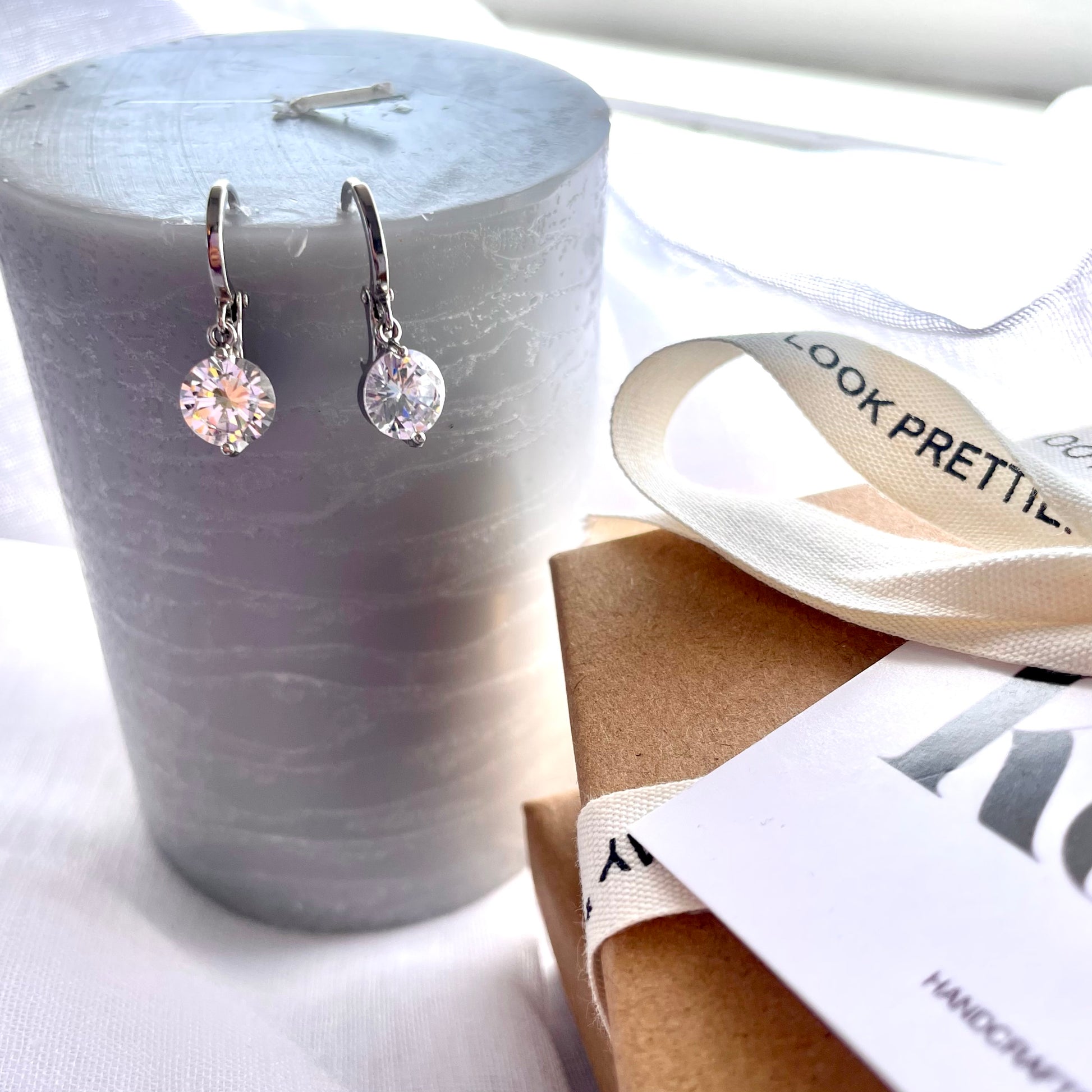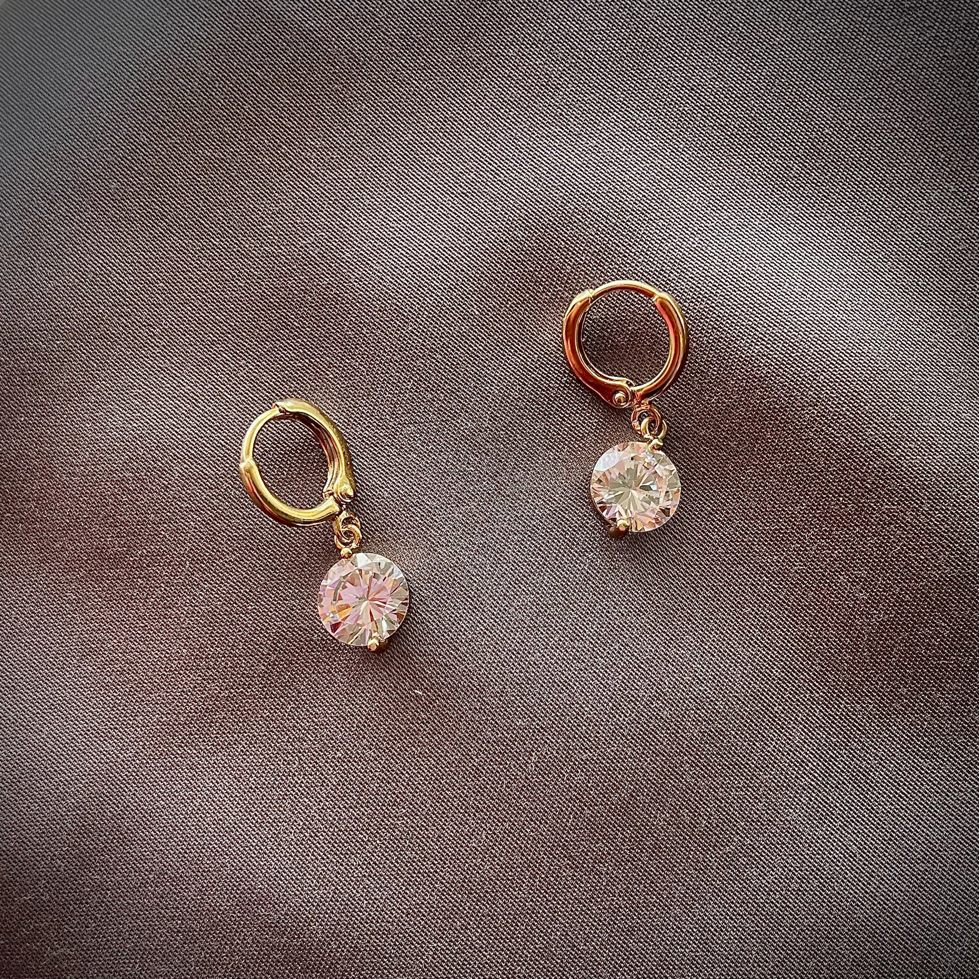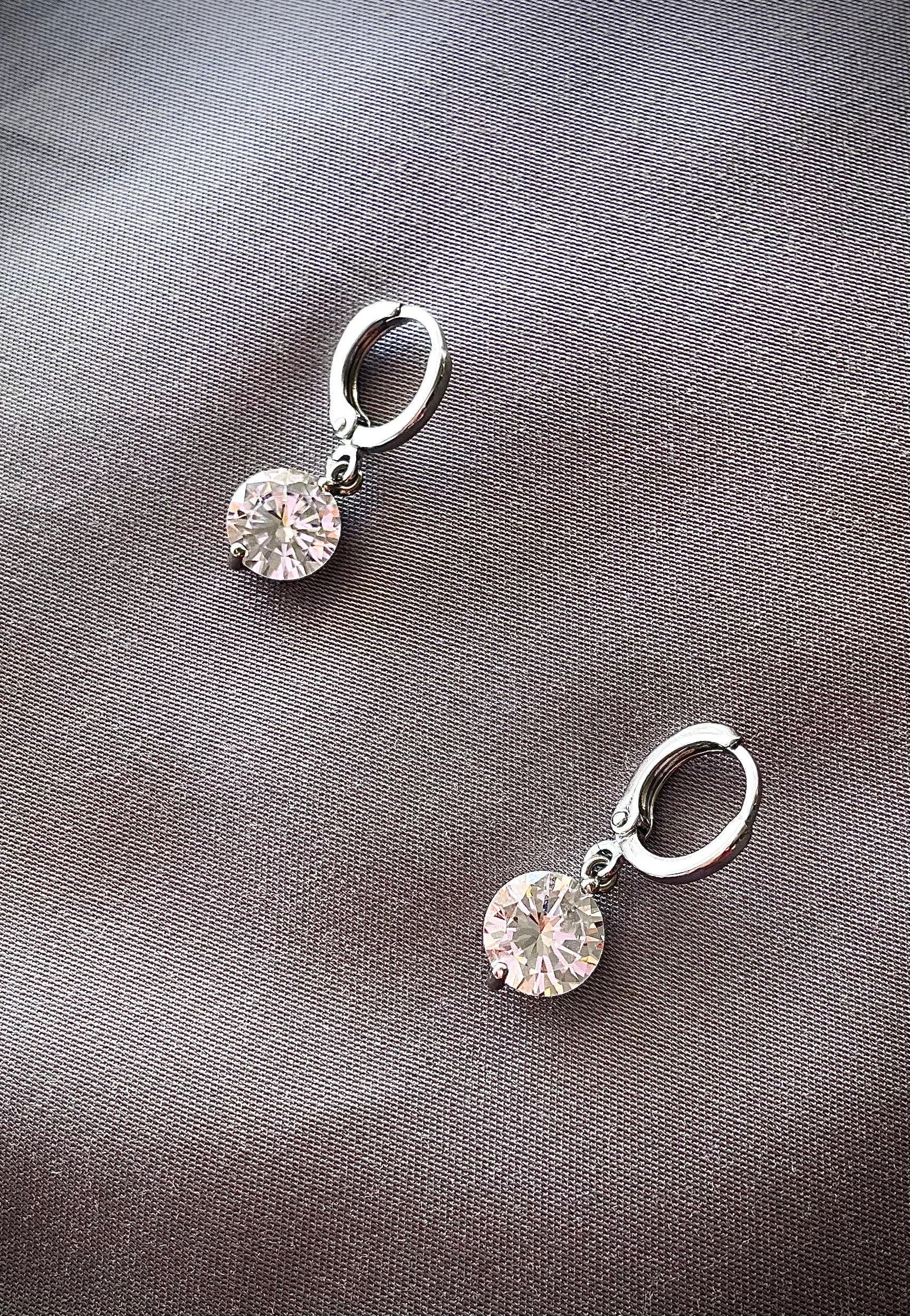 Timeless hoops featuring a round cubic zirconia charm that sparkles with diamond like brilliance.