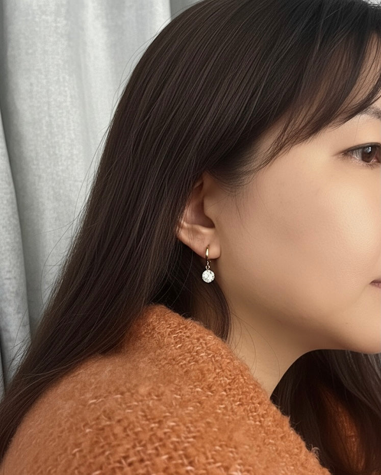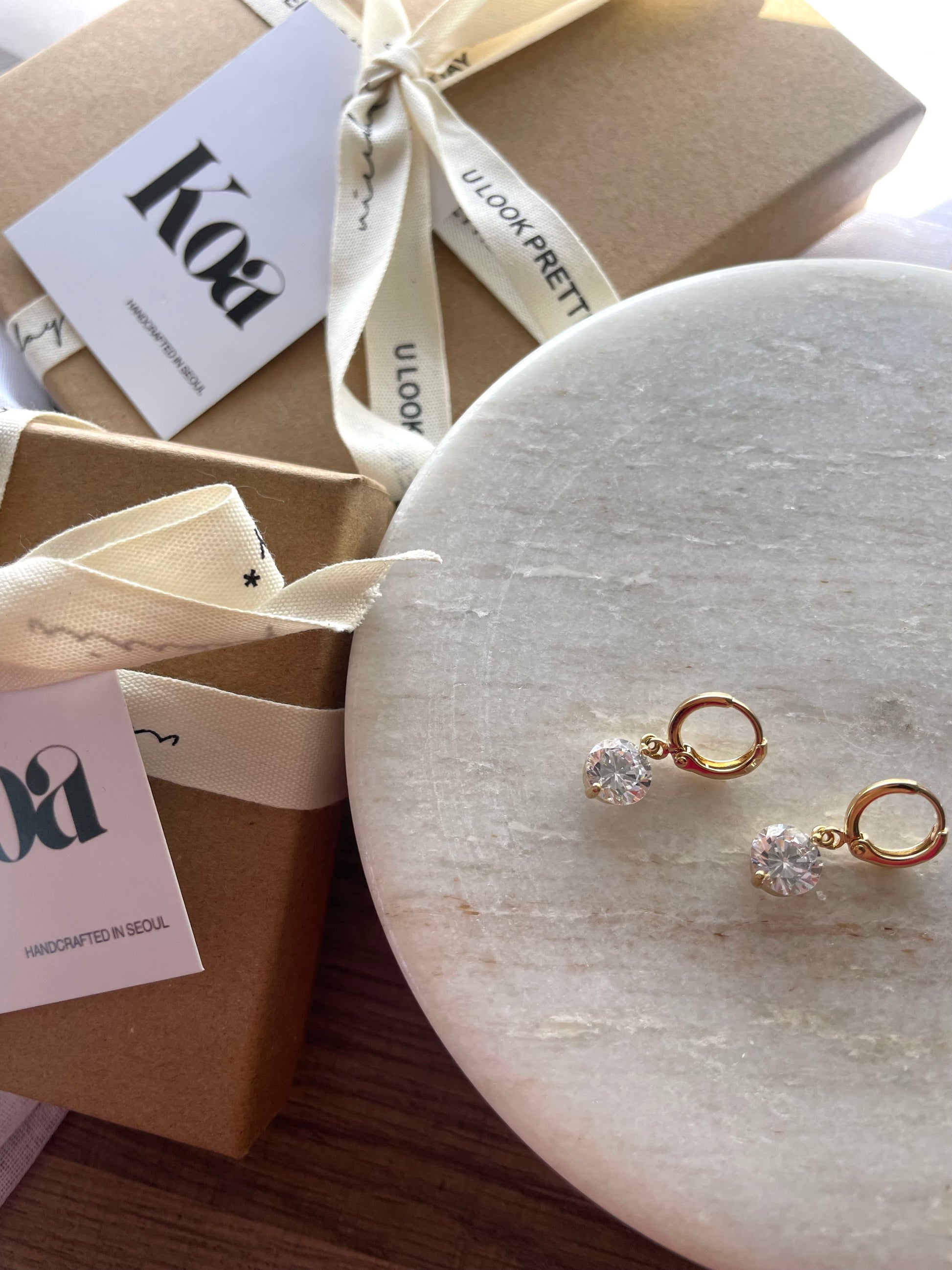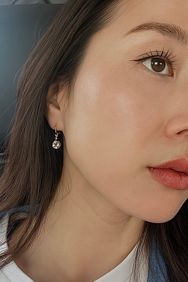 Timeless hoops featuring a round cubic zirconia charm that sparkles with diamond like brilliance.